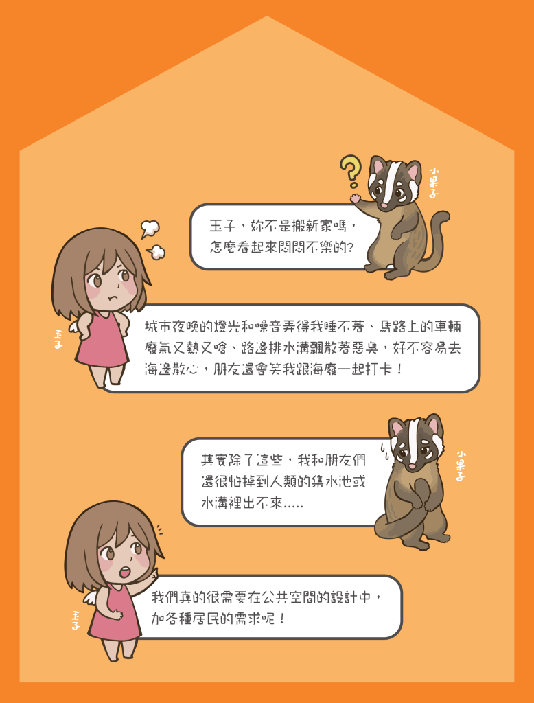 在這些構造物旁,加入斜坡道、攀爬網、木製/竹製爬梯等,就能協助野生動物通行或脫困喔!