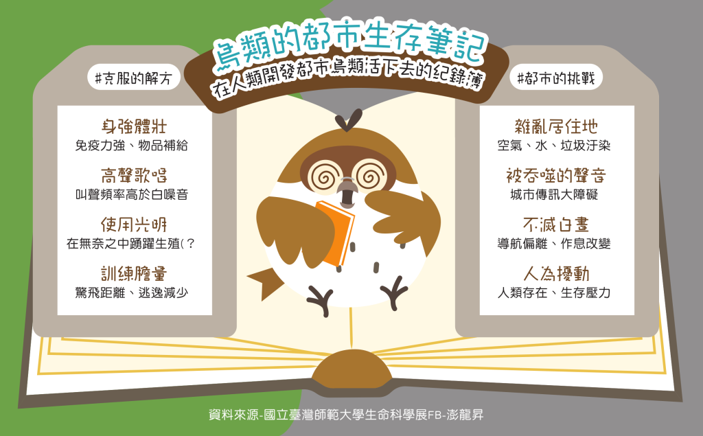想想看,鳥類如何在人類開發下的都市存活呢?他們會遇到的挑戰,及克服的解方是什麼?