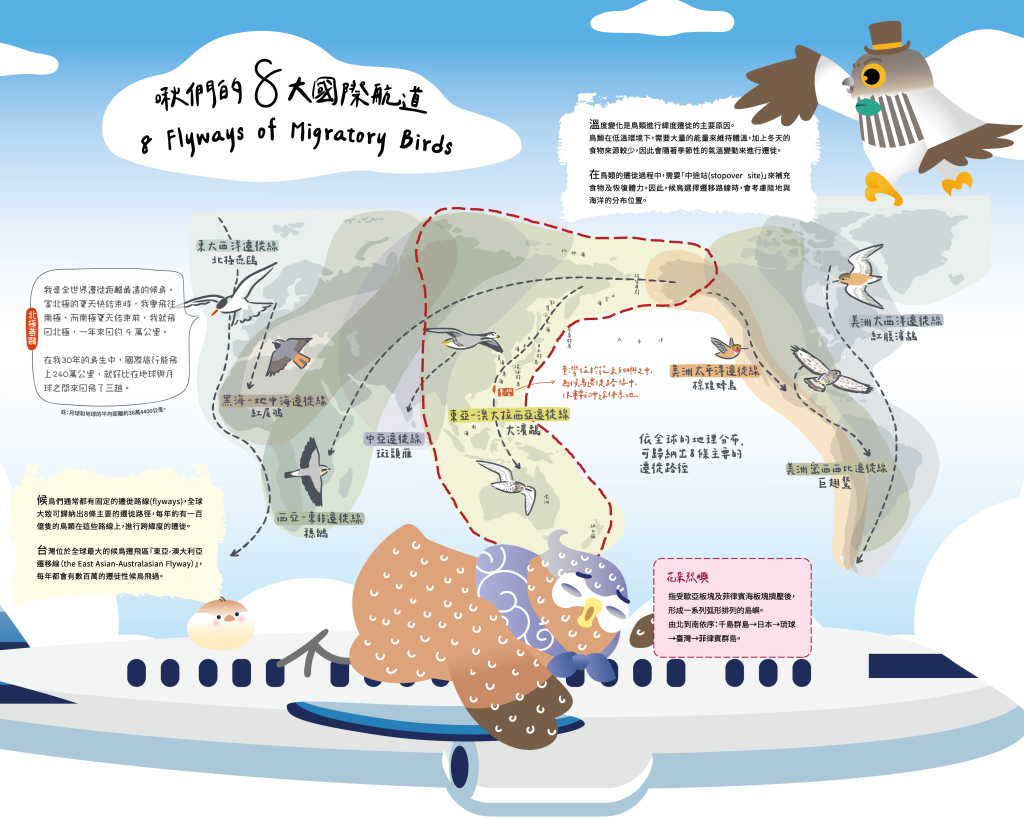 台灣位於全球最大的候鳥遷飛區『東亞-澳大利亞遷移線(the East Asian-Australasian Flyway)』,每年都會有數百萬的遷徒性候鳥飛過。