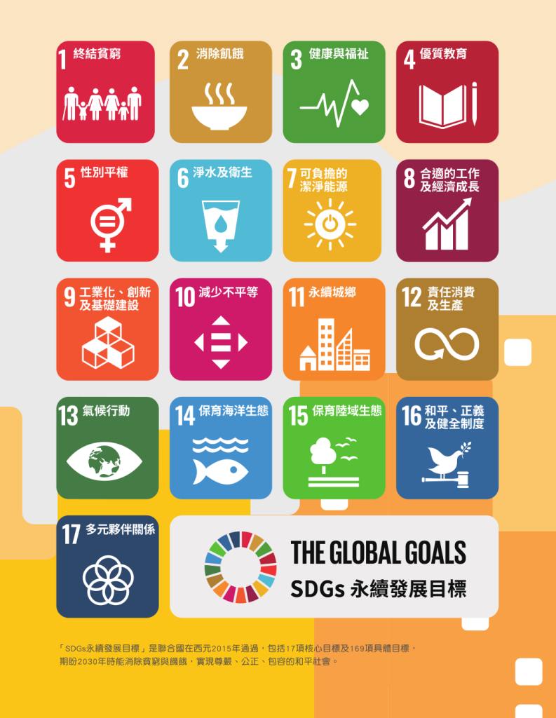 聯合國在2015年時,提出共17項的「永續發展目標(SDGs)」,期待透過這些目標,在2030年前,全世界能一起努力,讓地球變得更美好。
